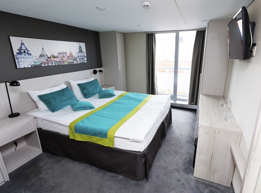 К категории Полулюкс+ с балконом (средняя палуба) относятся каюты: 305, 306, 308, 309, 310, 315, 316, 323, 325, 326. Двухместная каюта с балконом и со всеми удобствами, расположенная на средней палубе. Площадь каюты ≈ 15 м². Площадь балкона ≈ 6 м². Размер кровати – 160х200 см. Доступ к Wi-Fi предоставляется с ограничением трафика. Возможно размещение третьего человека (ребенок до 14 лет включительно) на дополнительном спальном месте – еврораскладушка.