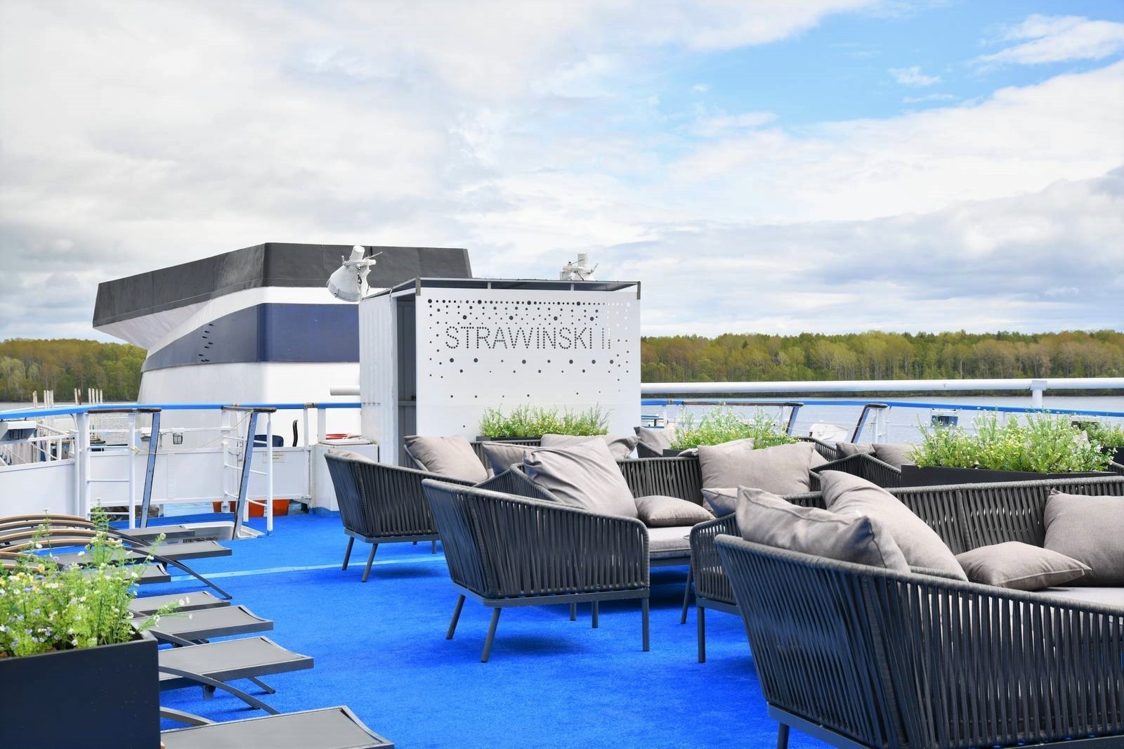 «Игорь Стравинский» – комфортабельный четырехпалубный теплоход-пансионат проекта 302 был построен в Германии и ранее работал только с иностранными туристами. В навигацию 2023 теплоход впервые принял на борт путешественников из России. После модернизации 2019 года внутренняя отделка теплохода отличается современными интерьерами, выполненными в элегантном минималистичном стиле.